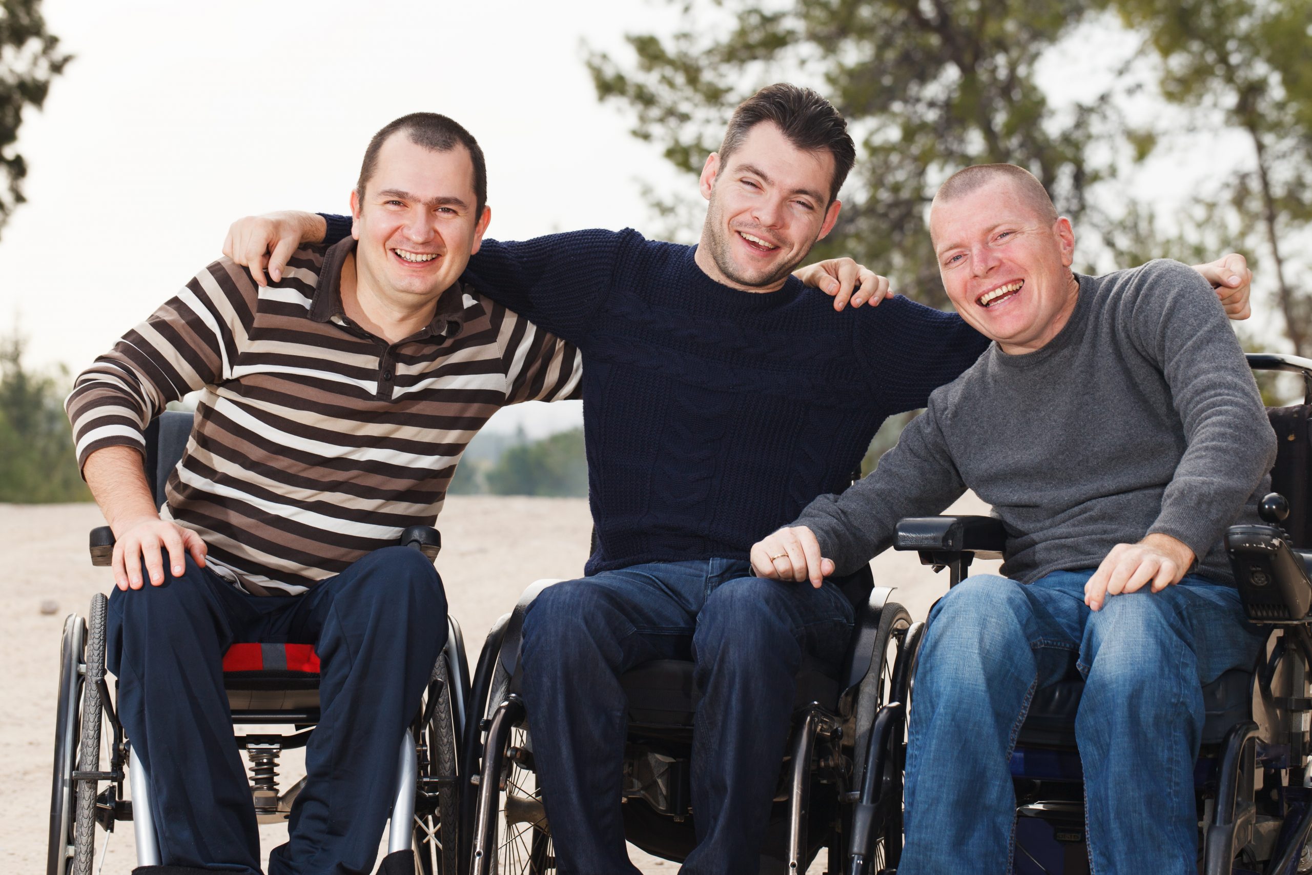 Disabled,Happy,Friends,Having,Fun,Together,Outside.